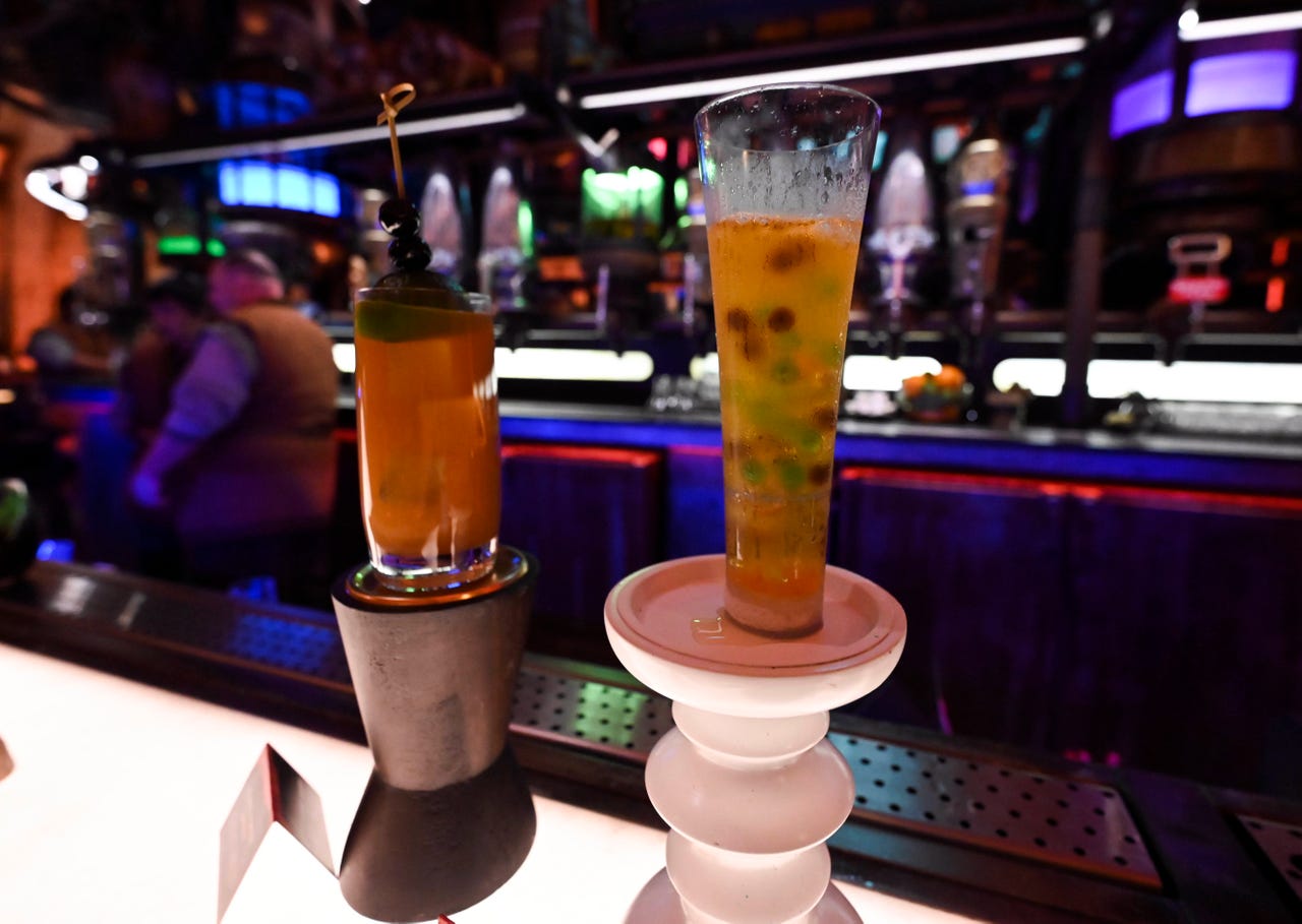 Thirsty for a Taste of Adventure? Welcome to the local cantina, where bounty hunters, smugglers, rogue traders and weary travelers of all ages come together to refuel, enjoy music and conduct meetings no questions asked. With an expansive menu of exotic concoctions for young ones and adults, the cantina is a welcome rest stop before your crew's upcoming galactic journey.Alcoholic cocktails are pre-mixed and served to of-age park guests in "unique vessels" but bartenders will also serve non-alcoholic refreshments for children.As you plan your next smuggling run, please enjoy some bold musical entertainment courtesy of droid DJ R-3X, a former Starspeeder 3000 pilot. The cantina adheres to proprietor Oga Garra's strict code of conduct, but patrons can be unpredictable, so just keep your head down and drink casual.
