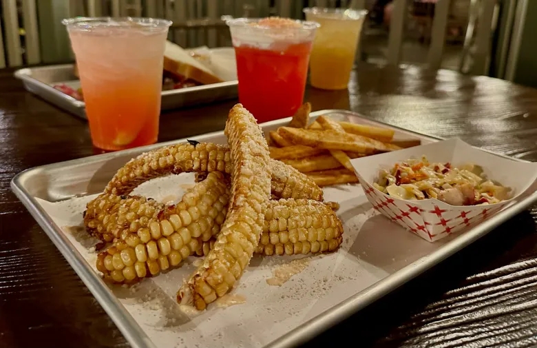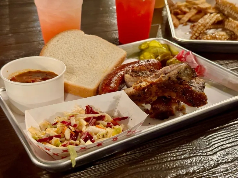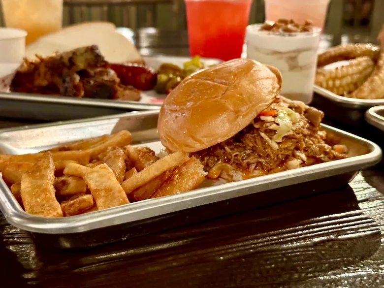 Paw through the Barbecue Pulled Pork Sandwich, Smoked Beef Brisket Sandwich or Classic Cheeseburger. The Toasted Cheese Sandwich, Chicken Tenders, Pork Spareribs and healthy snacks will surely satisfy your little ones.If you’re truly ravenous, try our Smoked Barbecue Combo Platter featuring a selection of house-smoked meats, served with baked beans, coleslaw, white bread and pickled vegetables for a real humdinger of a meal! Those who prefer a plant-based meal can try the Corn Ribs Plate.To wash it all down, try a specialty beverage like the Sparkling Strawberry-Pickle Lemonade… that’s right, there’s a “pickle” in the lemonade!