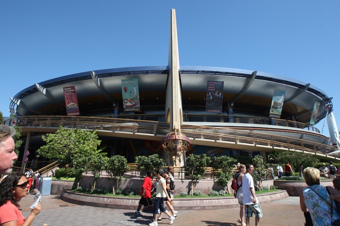 After being welcomed by their host, Tom Morrow, guests walk through various interactive exhibits and displays showcasing new technologies and future products.