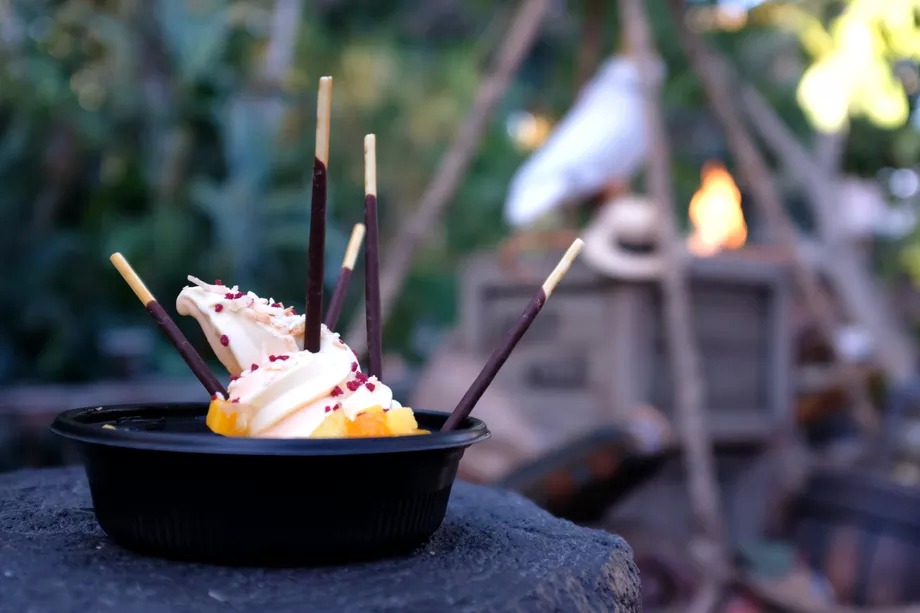 This one-of-a-kind destination will be a popular rest stop for Adventureland locals and weary explorers alike. After picking up a snack or two, choose a spot on the open-air dock, soak in the sights of the Jungle River waterfront, sit back, and listen to the musical sounds of the tropics all while experiencing delicious new tastes! After the sun goes down, flickering torch lights will illuminate the area, transforming The Tropical Hideaway into an enchanting nighttime venue.Here is what Disney says about Tropical Hideway. An Outpost for All. Explore the wilds of the park, then kick back and enjoy delish dishes amidst this lush, trader’s market.Nestled in the crossroads of Adventureland, The Tropical Hideaway is a new quick-service location featuring exotic eats and a place to rest for weary world travelers and park Guests alike.