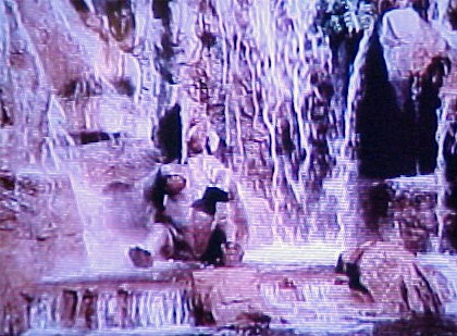 Beautiful Schweitzer Falls is upon us again. The overhanging rock formation will afford us a different view this time. I have a special treat for you, folks. You may never have seen this before... there it is- the backside of water!
