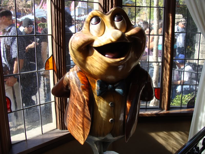 From WED Disneyland Dictionary 1968 Mr. Toad Is a hilarious race through the streets of Old London Town, inspired by the adventures of Mr. Toad from the story, Wind in the WillowsMr. Toad's Wild Ride had one simple goal to make guests laugh. The wild ride is housed in a rectangular building that shared with Alice in Wonderland. In fact Alice's caterpillar vehicles crawl up to the second floor above toads tracks. There is a shadow of Sherlock Holmes Complete with pipe and cap in the second-story Mr. Toad's theme came from Disney's half-hour animated movie The Wind in the Willows from 1949, which is based on the classic Kenneth Graham book.