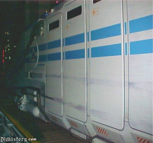 We see another StarSpeeder ship ahead of us going into an area marked 'To launching area'. Our ship all of a sudden makes a very jolting left turn - and we are now headed through some doors marked 'Maintenance Bay - Stay Clear'!